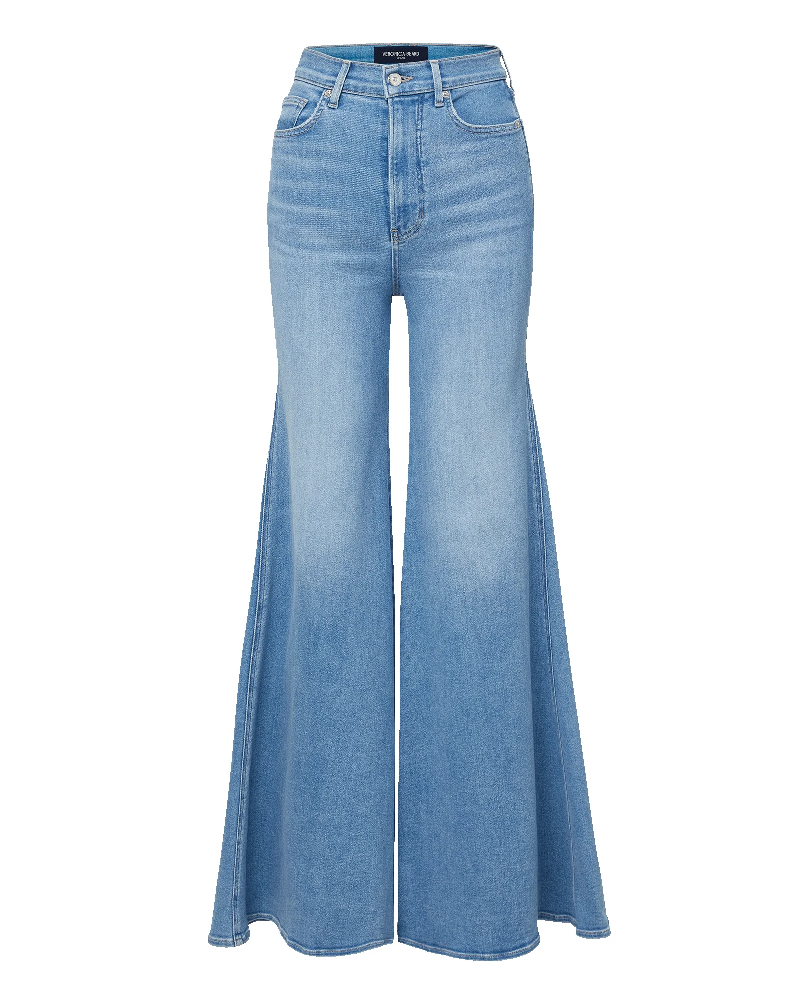 Product details Statement proportions, perfected. Made in LA from premium Italian stretch denim, the Jesse jean is defined by exaggerated, full-length flares. In a light blue wash, it's both high-impact and effortlessly cool. Our signature V-shaped belt loop completes the look. Pair with a slim-fit, long-sleeve tee or a floral blouse to play up the retro vibes. - 81% Cotton, 11% Lyocell, 6% Elastomultiester, 2% Elastane - Made in LA from premium Italian denim - Closure: Zip fly - Turn inside out and machine wash cold. Hang to dry. Color transfer may occur. - Style #J2602D540228P9