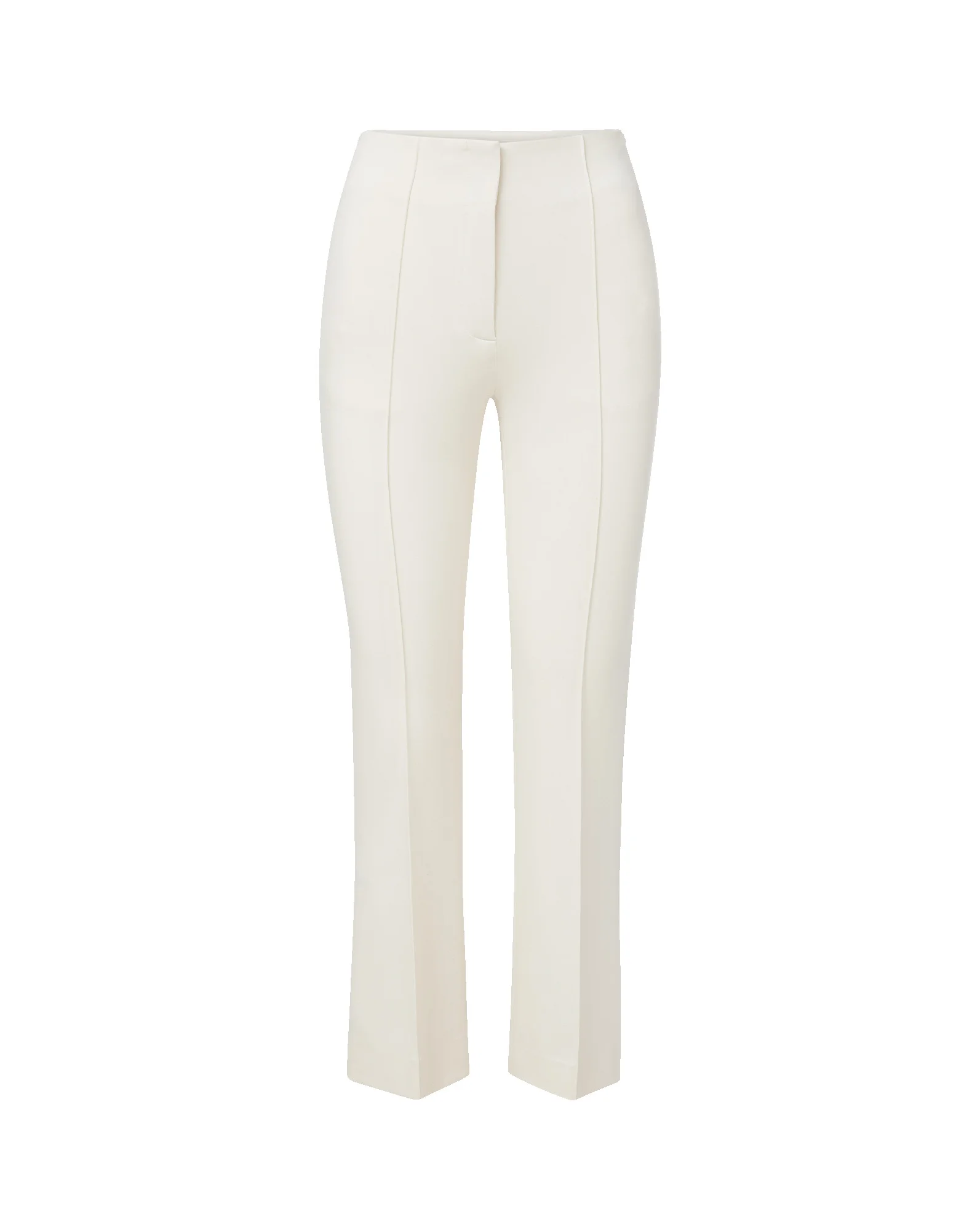 Product details One of our best-selling silhouettes for a reason. Crafted from a premium stretch-blend ponte in white, the Kean is a streamlined trouser with a slim leg and cropped, slightly flared hem. A high waist elongates the figure, finished with welt pockets for a tailored look. Pair with a cashmere sweater for a polished everyday look. - 68% Viscose, 28% Polyamide, 4% Elastane - Lining: 100% Polyester - Made in the USA - Dry clean only - Style #2511JY17860843