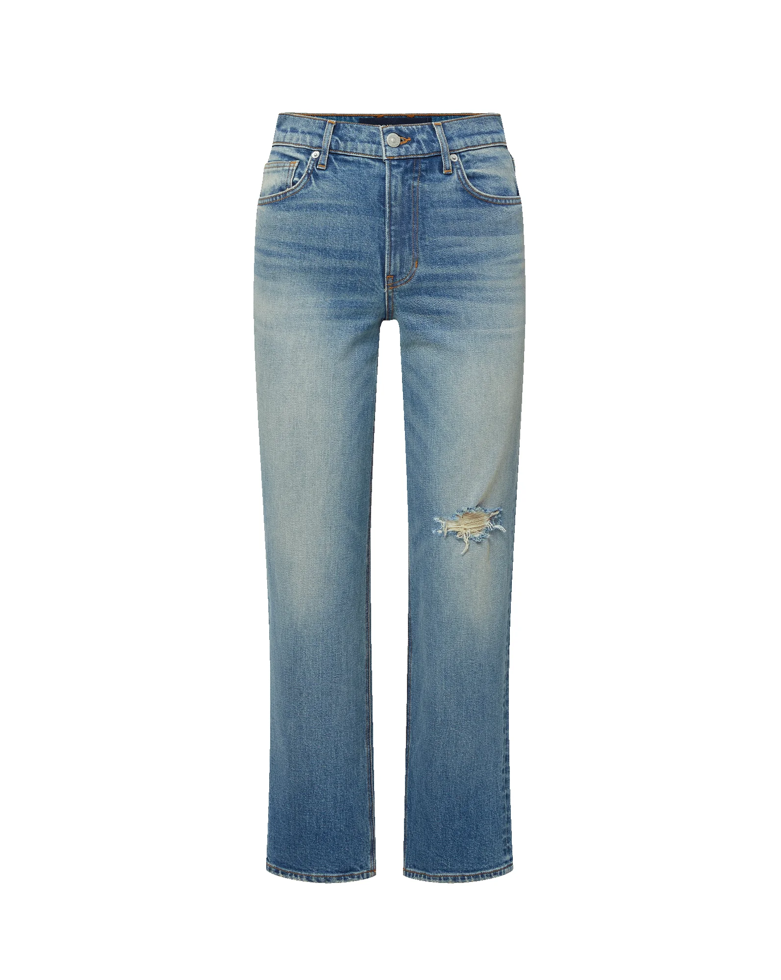 Product details The straight-leg jean, perfected. Expertly crafted in LA from Italian stretch denim in a light blue wash, the Leah is snug through the hip and thigh before falling into a classic straight leg. Pre-shrunk to hold its shape, it’s finished with an easy mid-rise waist and an ankle-length hem—perfect for showing off your shoes. Style with a simple T-shirt and dickey jacket for a classic VB look. - 98% Cotton, 2% Elastane - Made in LA from premium Italian denim - Closure: Zip fly - Turn inside out and machine wash cold. Hang to dry. Color transfer may occur. - Style #J26037210146JD