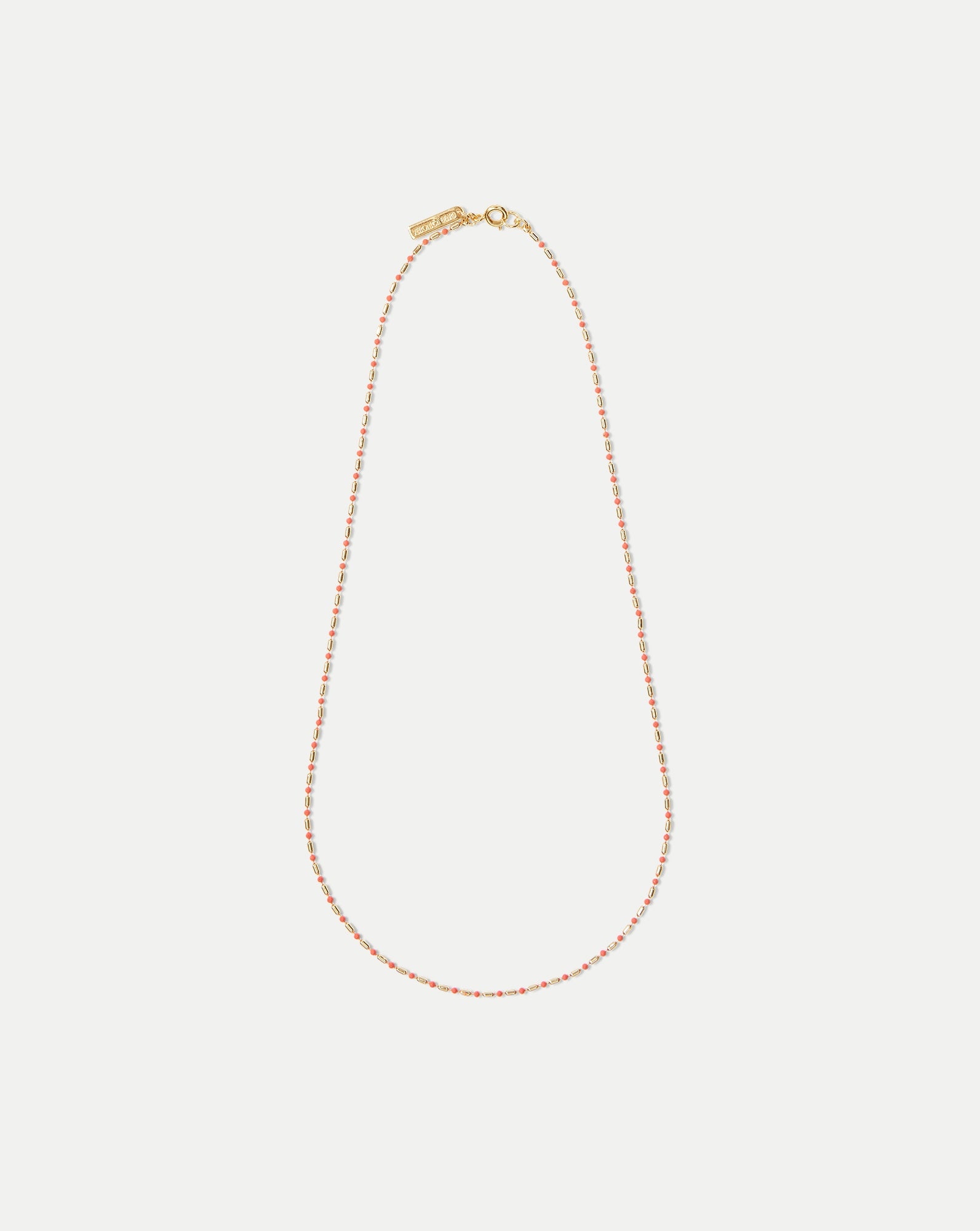 Product details The effortless everyday necklace, made for layering. This dainty, 18-inch chain features a mix of 12-karat gold-plated brass and pink enamel-covered beads, securing with a Q clasp for ease. Layer with the Enamel Bead Chain Necklace (or two, or three), mixing and matching colors, and style with your favorite VB tees, tank tops, and swimwear. - Details: 12k Gold-Plated Brass, Enamel - Length 18” - Gently wipe surface with a soft cloth to clean. Avoid direct contact with lotions, perfumes, or oils. - Style #96-N0002