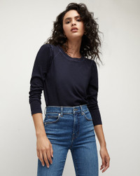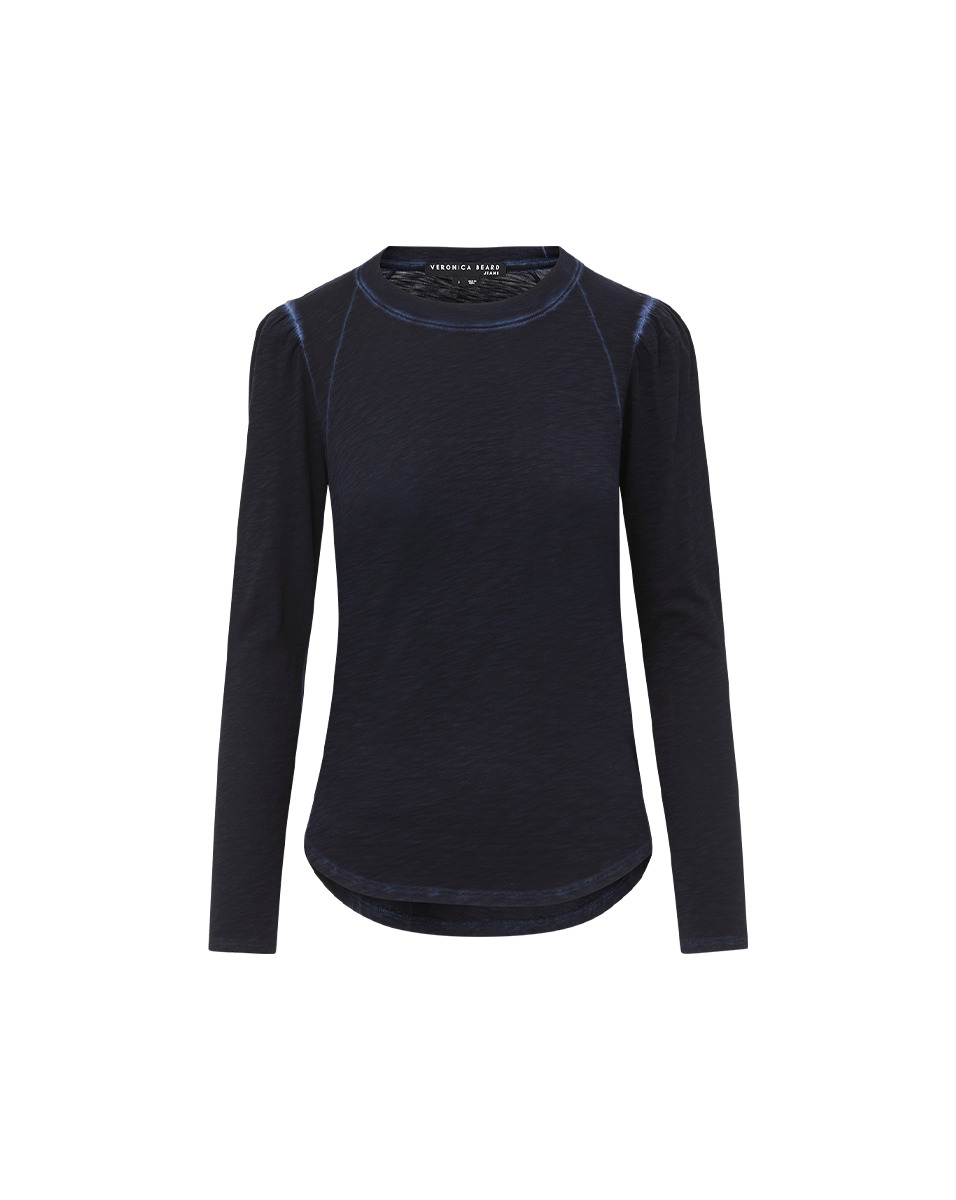 Product details The Mason Baseball Tee is a VB favorite, now in a faded navy and 100% cotton. Perfect on its own or as a layering essential, this wardrobe staple features puffed, raglan sleeves and contrast-color seams for visual intrigue. Wear with jeans, shorts or under a blazer—it's endlessly versatile. - 100% Cotton - Sleeve length 29 1/4" | Length 24" - Our model is 5'10" and is wearing a size S - Machine wash cold - Style #J2211JY0070391