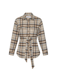 Product details Expertly tailored from an Italian wool blend, the Mikaela plaid shacket is cut for a relaxed, slightly oversized fit. Designed with a matching self-tie belt to define the waist, its collared button-down silhouette features double flap pockets and a rounded hem. Perfect for days on the go, style this beige jacket with denim for everyday ease. - 51% Acrylic, 26% Polyester, 20% Wool, 3% Other Fibers - Lining: 100% Polyester - Dry clean only - Fabric country of origin: Italy - Made in the USA - Style #2509N251089