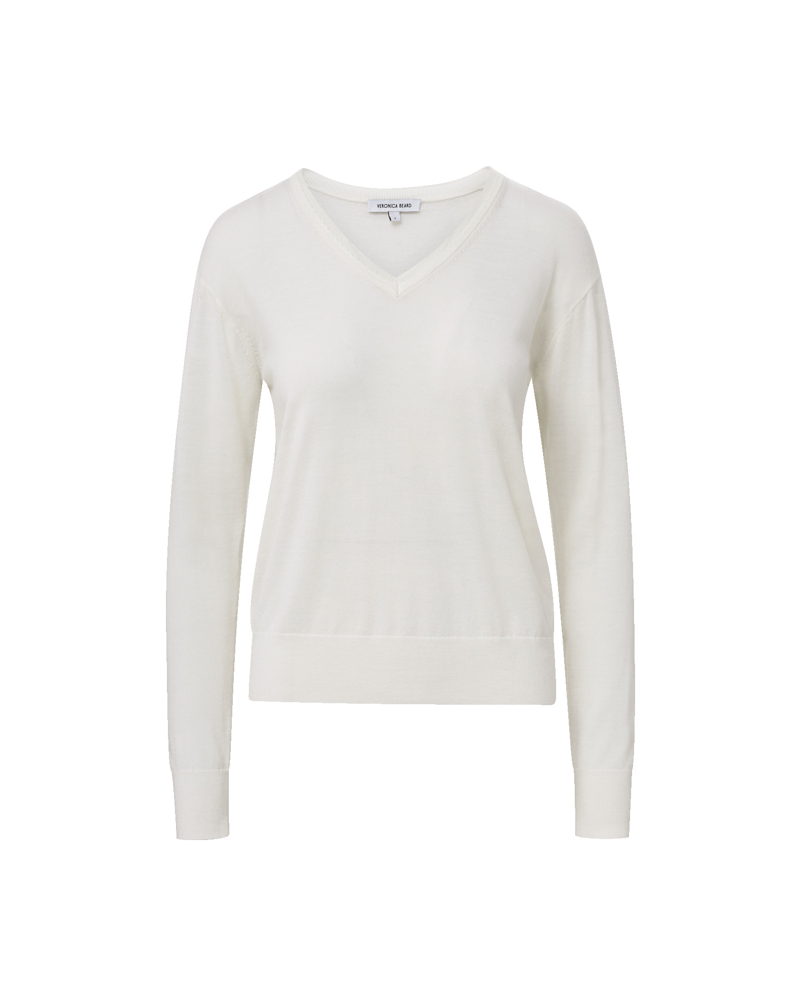 Product details The V-neck pullover, perfected. Expertly spun from 100% Merino wool, Milette features a classic straight silhouette and a clean, timeless look. A double-layer rib trim with delicate scalloped detailing adds a feminine finish to the V-neckline. Versatile worn tucked or untucked, it's a luxe wardrobe staple you’ll reach for now and forever. - 100% Merino Wool - Dry clean only - Style #2508KA1390788