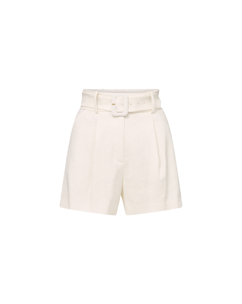Product details The tailored short you’ll live in all season long. Expertly tailored from Italian stretch linen, the off-white Piper sits high on the waist and falls with a beautiful drape to a thigh-grazing length. With a waist-defining belt, this A-line silhouette is designed to flatter the figure, while front pleats add a sense of ease. Side and back pockets complete the look. Wear with an elongated linen blazer for a chic short-suit moment. - 55% Linen, 44% Viscose, 1% Elastane - Lining: 100% Polyester - Fabric country of origin: Italy - Dry clean only - Style #2504LN3380249