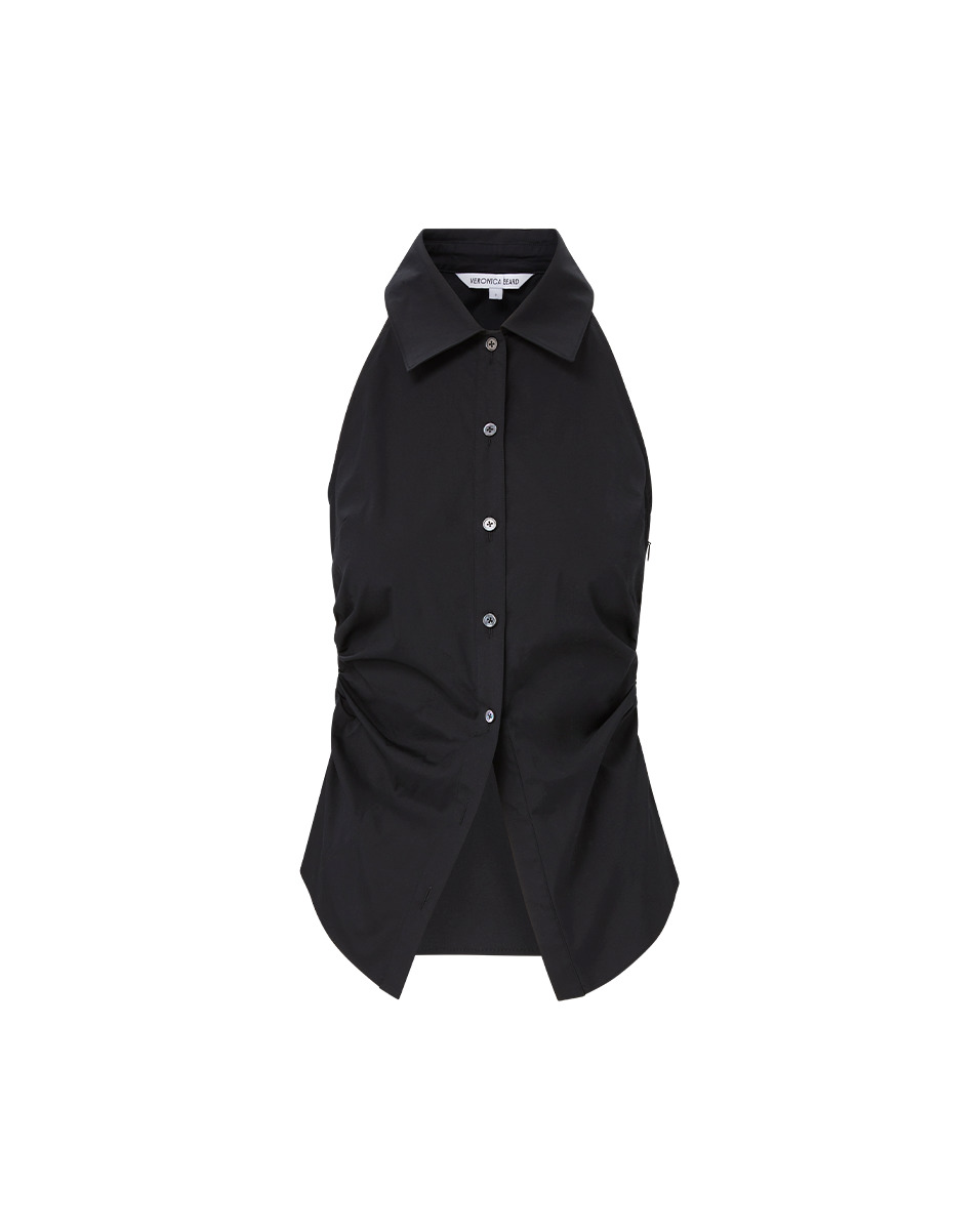 Product details As essential, elevated. We reimagined the classic white button-down in a sleeveless silhouette and added an exaggerated angled cutaway hem. Wear it alone or as a layering essential—this will be your new wear-anywhere go-to. - 97% Cotton, 3% Elastane - Unlined - Dry Clean Only - Style #2502SCP41303