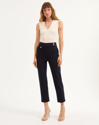 A slim leg and streamlined silhouette make our Renzo pants a go-to pair for the office. Wear with a feminine blouse and statement heels for a chic, uptown look. Pair with the Miller Dickey Jacket for a matching set! DETAILS & FIT - 63% Polyester, 31% Viscose, 6% Elastane - Inseam 27" | Front rise 11.25" | Back rise 15.5", based on a size 4 - Our model is 5'10" and is wearing a size 4 - Professional dry-clean - Style #CORESU0026409S