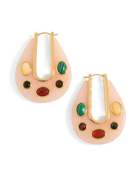 Product details Our signature drop hoop—reimagined with a boho twist. Featuring bezel-set cabochon stone details, it’s finished with a 12k gold-plated brass inner rim and a click-top closure for easy wear. Style it back to casual outfits and night-out looks alike. - Resin, 12k Gold-Plated Brass - Length: 44 mm | Width: 35 mm - To clean, gently wipe the surface with a soft cloth - Style #96-E0007