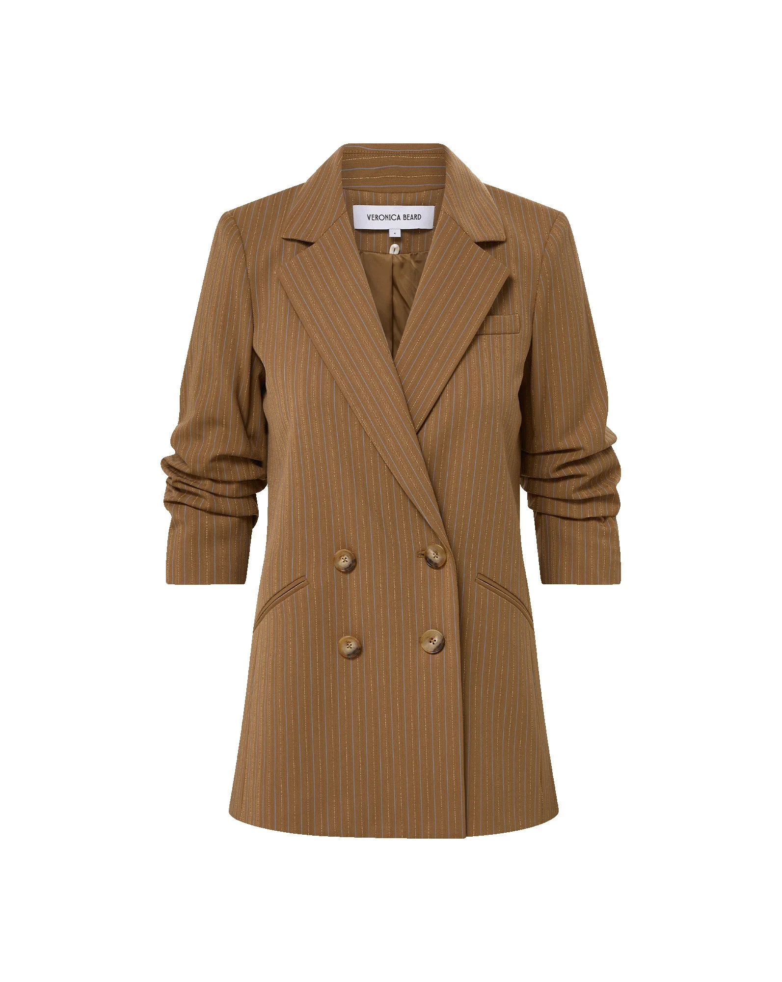 Product details The classic pinstripe blazer—reimagined. Crafted from luxe midweight suiting in light brown, the Rupert dickey jacket combines sharp tailoring with a relaxed silhouette. Designed for an oversized fit, it features pre-ruched sleeves, a double-breasted closure, and a classic notch collar that feels both timeless and modern. Style it with trousers for a cool take on the suit, or pair with denim and ankle boots for signature VB polish. - 67% Polyester, 29% Viscose, 4% Elastane - Lining: 100% Cupro - Dry clean only - Style #2512ST3710444
