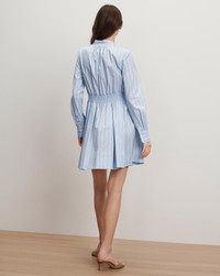 Product details A fresh take on the classic shirtdress. Crafted from 100% cotton in sky blue stripes, the Schor mini dress features a smocked waist and blouson sleeves, lending a naturally feminine shape. A collarless split neckline with a button placket adds a polished finish. Your new go-to for day dressing—just add flats or strappy heels and go. - 100% Cotton - Dry clean only - Style #2512PO6621981