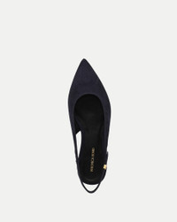 Product details The slingback flat—with a VB twist. Crafted from premium navy suede, Shina is a sleek pointed-toe ballet flat featuring a stretch-gore ankle strap with our signature Dash belted hardware. A subtle quarter-inch heel finishes the look, adding an extra layer of support. A style with day-to-night versatility, it pairs well with cropped denim and tailored trousers alike. - Suede - Lining: Leather - 0.25” heel - Store in a cool, dry place inside dust bag - Clean under the supervision of a specialist - Style #J6225L2