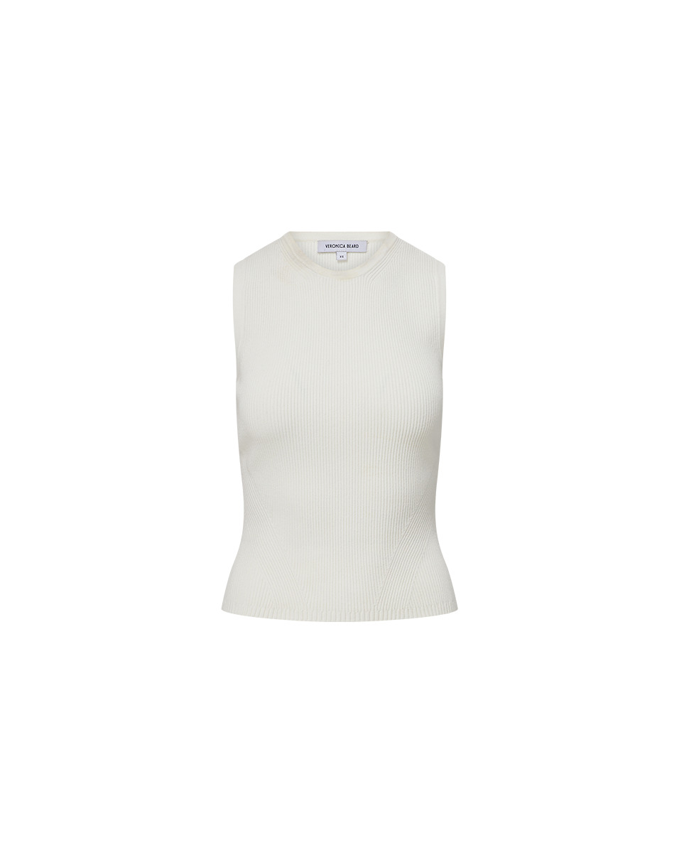 Product details A VB favorite, now with a crew-neck design. The Sid is a lightweight shell made from a stretch knit and features an allover ribbed design. Perfect on its own or as a layering essential, this pairs well with anything and everything. - 51% Viscose, 34% Nylon, 12% Polyester, 3% Elastane - Dry clean only - Style #2411KS1290624