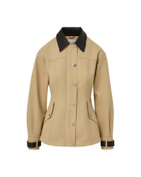 Product details A refined take on the raincoat. Crafted from water-repellant cotton in khaki, the Talla jacket features a fitted peplum silhouette with vertical princess seams and side paneling to cinch the waist. A snap-front closure with a hidden zipper, angled flap pockets, and leather-trimmed collar and sleeve tabs complete the look. Chic rain or shine, layer it over your everyday looks for instant polish. - 100% Cotton - Lining: 100% Polyester - Dry clean only - Style #2512NO1470406