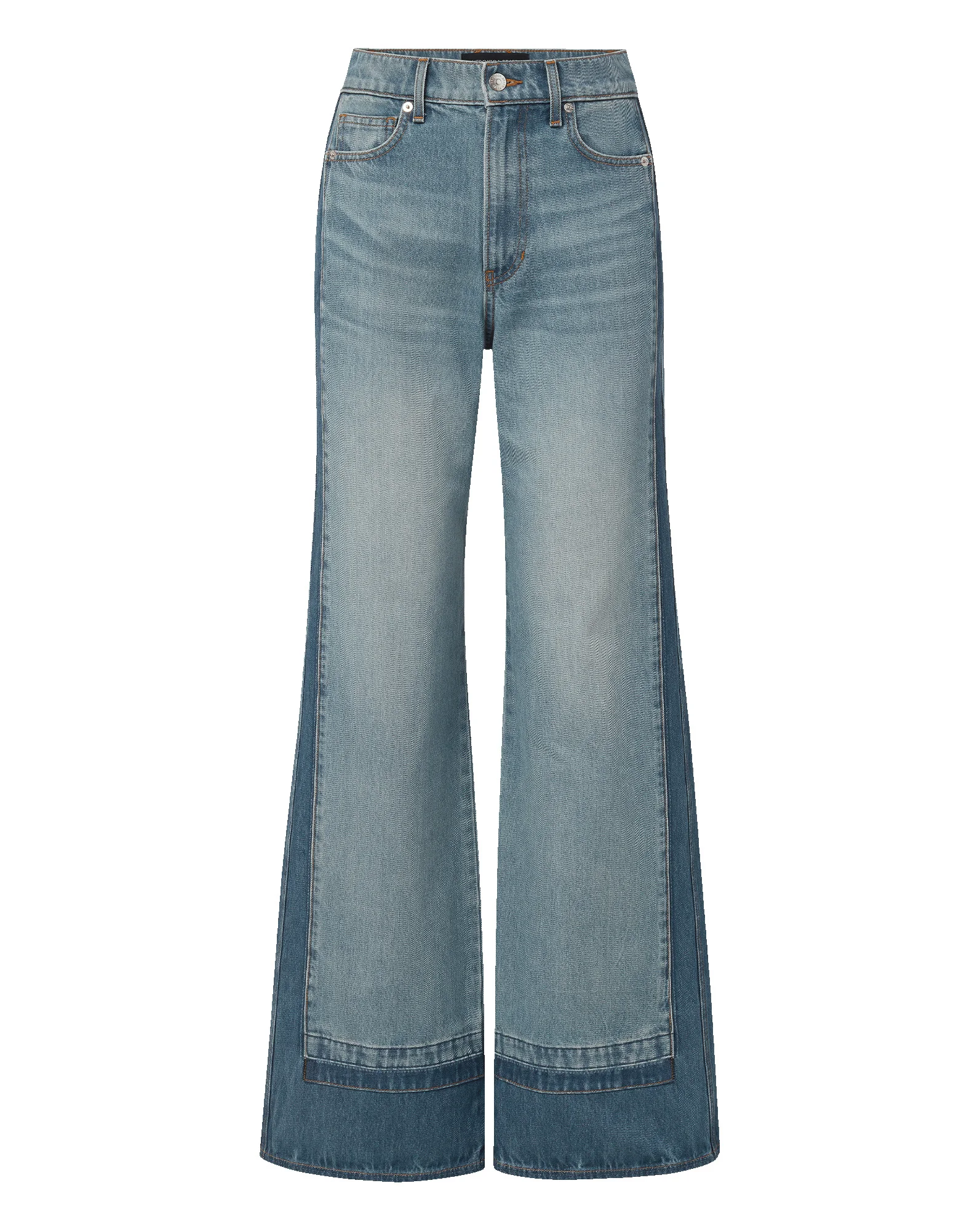 Product details The Taylor you know and love, now with a two-tone finish. Made in LA from non-stretch Japanese denim, this classic high-rise, wide-leg silhouette features a light wash with contrasting medium-blue panels at the sides and hem for a color-blocked effect. A VB-favorite silhouette, the versatile full-length pairs well with flats and heels, making it perfect for everyday wear or dressing up. - 100% Cotton - Made in LA from premium Japanese denim - Turn inside out and machine wash cold. Hang to dry. - Style #J251116810403C