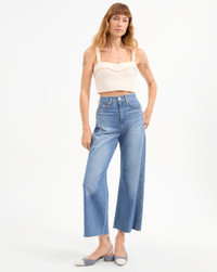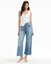 Product details Meet the Taylor, our high-rise, wide-leg jean—now with a cropped hem to better showcase shoes. Made in LA from 100% non-stretch premium Italian cotton, this VB favorite will be your new versatile go-to. Style with a tee and flats for day; dress it up with a printed top and heels for nights out. - 100% Cotton - Made in LA from premium Japanese denim - Machine wash cold - Style #J24021681152ES