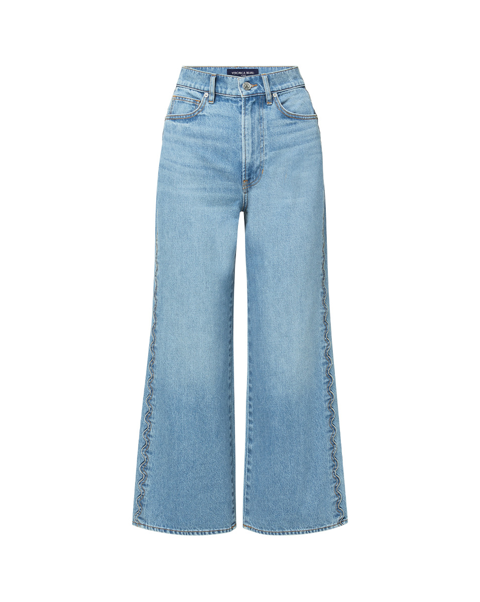 Product details The Taylor you know and love—now featuring a statement scalloped side seam and cropped ankle to better showcase your shoes. Crafted from premium non-stretch Japanese denim in a classic blue wash, this high-rise, wide-leg jean will be your versatile new go-to. Style with a tee and flats for day; dress it up with a silky blouse and heels for nights out - 100% Cotton - Made from premium Japanese denim - Turn inside out and machine wash cold. Hang to dry. - Style #J25051681152NO