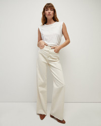 Updated in fresh ecru, the Taylor is a classic high-rise and wide-leg style in non-stretch denim. Flattering and always on-trend, this wear-forever jean also features a raw hem for a fashion-forward finish. Pair with everything from tonal silk blouses to plain white tees for a chic and easy look. DETAILS & FIT - 100% Cotton - Inseam 32" | Rise 12" | Leg opening 22 5/8" - Our model is 5'10" and is wearing a size 27 - Turn jeans inside out and machine wash on cold - Premium Japanese denim - Made in LA - Style #J22129501040EC - Rigid - Comfort Stretch - Stretch
