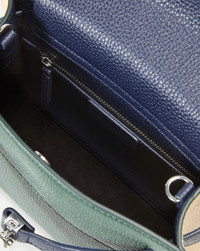 Product details The Dash you know and love—now in a fresh new shape. Crafted from green and navy pebbled leather, the updated silhouette features a structured top handle, a slightly taller body for added capacity, and a full-flap magnetic closure to keep your essentials secure. Along with our signature adjustable belted strap, it includes a removable, adjustable shoulder strap for maximum versatility and an interior zip pocket for easy organization. - 100% Leather - Lining: 100% Polyester - Material country of origin: USA - 9.8” L x 3.0” W x 7.3” H - Handle drop: 3.3” | Strap drop: 18.9” - Store in a cool, dry place and wipe any surface dirt with a dry cloth - Style #H2511HL123X200