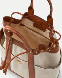 Crafted with durable cotton-blend canvas and supple leather, the Veronica Beard Goody Bag is distinguished by its elevated mixed-media look. Spacious yet compact, its thoughtful silhouette is perfect for storing your everyday essentials—or goodies. An inner zip pocket as well as outer compartment ensures everything stays organized. The ultimate everyday bag, it’s great for travel, running errands or dinner out. And with a removable leather strap, it can be worn as a crossbody, top handle or shoulder bag. A canvas liner, magnetic tab closure and crest-engraved button finish the look. DETAILS & FIT - 12” L x 4” W x 9.8" H - Cotton canvas with leather trim and cotton canvas liner - Store in a cool, dry place and wipe any surface dirt with a dry cloth - Style #H2402HCA01X011