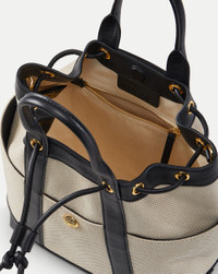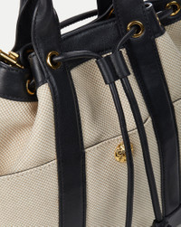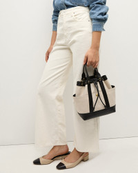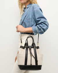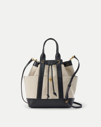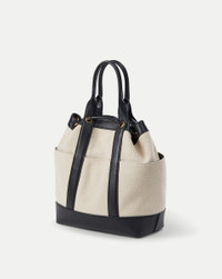 Crafted with durable cotton-blend canvas and supple leather, the Veronica Beard Goody Bag is distinguished by its elevated mixed-media look. Spacious yet compact, its thoughtful silhouette is perfect for storing your everyday essentials—or goodies. An inner zip pocket as well as outer compartment ensures everything stays organized. The ultimate everyday bag, it’s great for travel, running errands or dinner out. And with a removable leather strap, it can be worn as a crossbody, top handle or shoulder bag. A canvas liner, magnetic tab closure and crest-engraved button finish the look. DETAILS & FIT - 12” L x 4” W x 9.8" H - Cotton canvas with leather trim and cotton canvas liner - Store in a cool, dry place and wipe any surface dirt with a dry cloth - Style #H2402HCA02X010