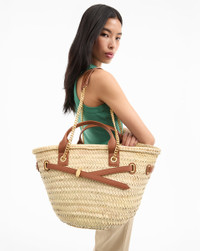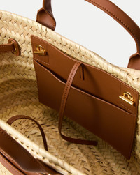 Product details Our best-selling Dash bag, now as a roomy basket tote for spring and summer. It’s handwoven from Spanish raffia and finished with polished leather trims and gold hardware for an elevated look and feel, featuring the same adjustable belted strap as the original. A flat bottom allows it to stand upright for easy access, while a leather tie closure and an interior slip pocket keep your items organized and secure. - 100% Raffia - Unlined - Trim: 75% Leather, 25% Polyurethane Laminate - Material country of origin: Spain - 17.7" L x 7.9” W x 10.6” H - Handle drop: 3.9” - Store in a cool, dry place and wipe any surface dirt with a dry cloth. To preserve the handwoven rattan and avoid snags or pulls, handle with care. - Style #H2505HRF03Z116