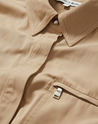 Product details Precision tailoring meets function. Crafted from soft, technical taffeta with a water-resistant finish, the Wilfred reimagines the classic button-down shirt with a sporty edge. Cut for a relaxed, slightly cropped silhouette, it features an adjustable bungee drawcord at the waistband for cinchable shape. A single metallic button accents the hidden placket, while an oversized zip pocket adds utility. Designed for apres-ski and beyond—pair it with VB denim for a casual look, or the matching Bates skirt for the complete set. - 100% Polyester - Dry clean only - Style #2512NV6241468