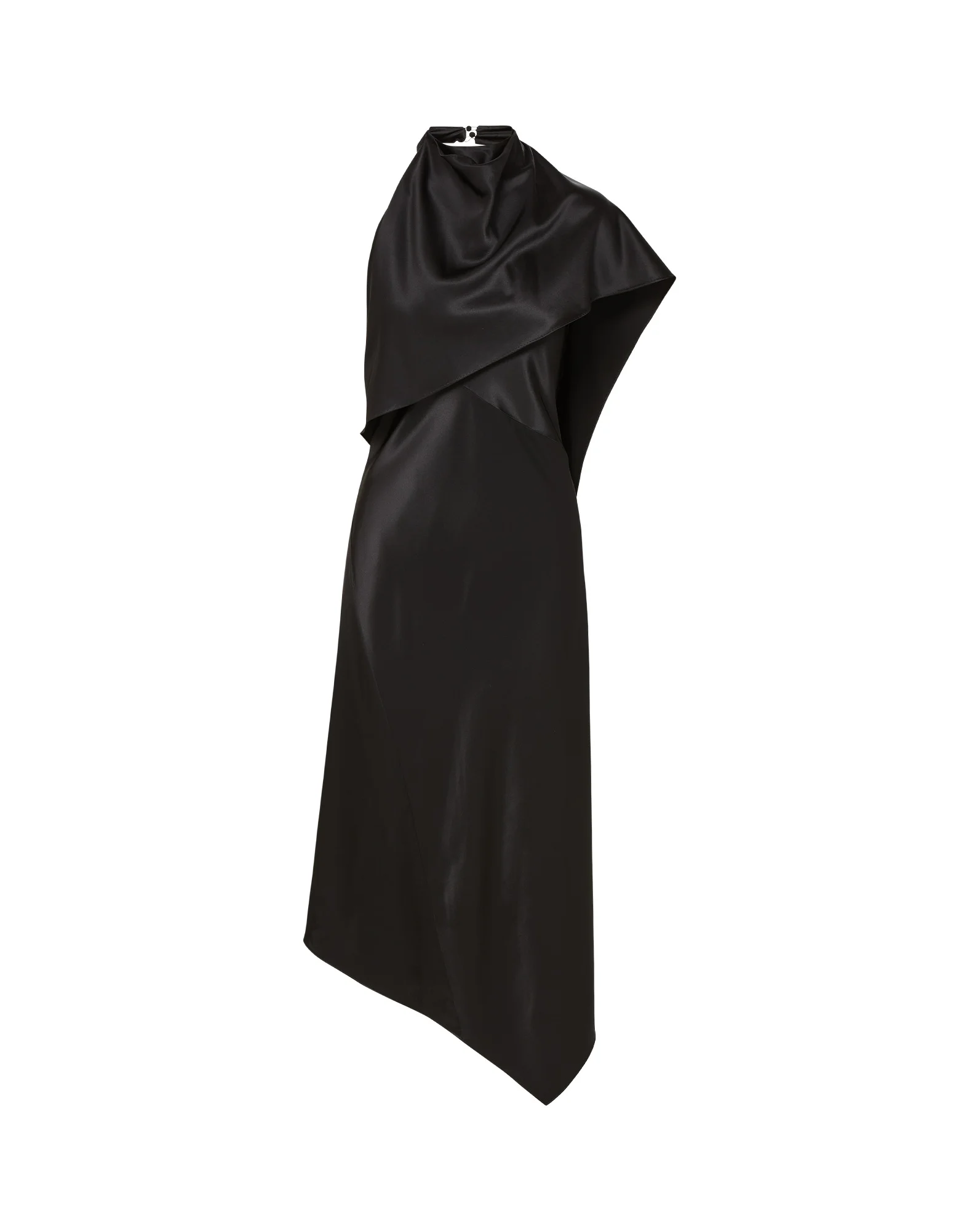 Product details An elegant take on the LBD. Crafted from a luxe stretch-silk blend, the Wyndham midi dress is cut on the bias for fluid, body-skimming drape. Its halter neckline features an attached fringed scarf, which slings elegantly over the shoulder. An asymmetrical hem and hidden back zipper closure complete the look. Modern and statement-making, style with a simple clutch and heels to own the night. - 53% Silk, 35% Viscose, 12% Elastane - Lining: 100% Polyester - Dry clean only - Style #2509FL5021752