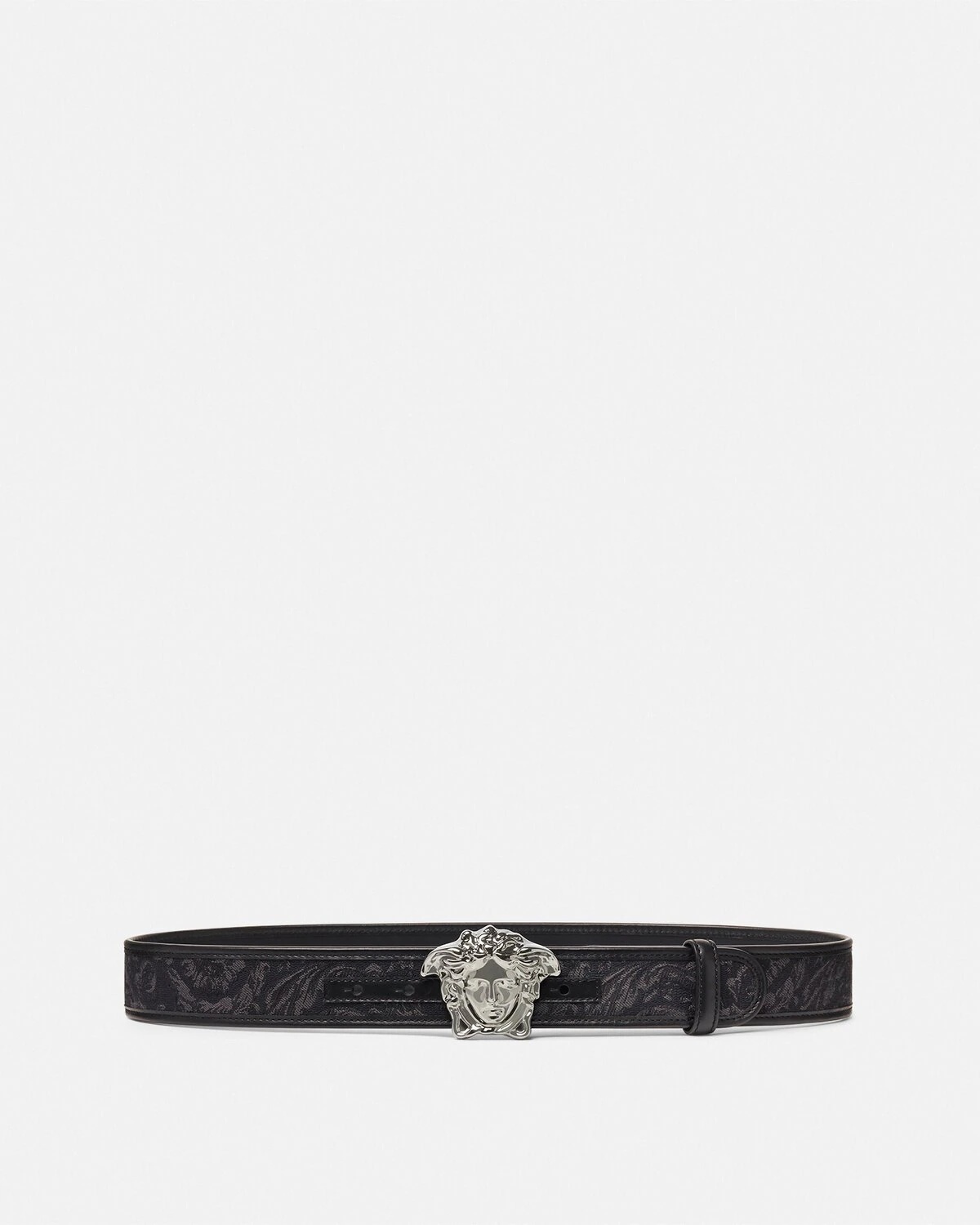 DETAILS A jacquard belt featuring the Barocco print and signature La Medusa buckle closure. - Barocco pattern - La Medusa buckle - Belt loop - Outer composition: 53% Nylon, 38% Cotton, 6% Polyester, 3% Acrylic - Lining: 100% Calf leather Item: DCU4140-1A09321_2BM0E SIZE & FIT - Height: 1.6"