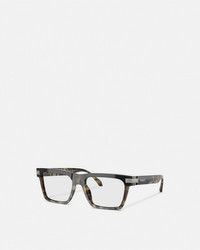 DETAILS Optical glasses in a squared frame defined by geometric lines, accented with the logo at the sides. - Logo - Frame color: Light Havana and black - Temple color: Light Havana and black - Lens color: Transparent - Frame: Acetate - Temple: Acetate Item: O3354-O545655_RTU_TU_ONUL__ SIZE & FIT - Eye size: 2.2"