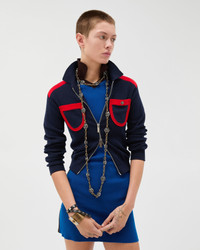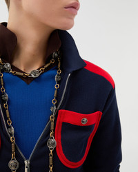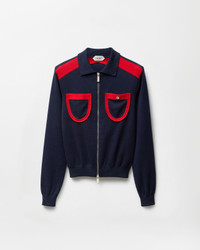 This cotton-knit zipped cardigan has a polo collar and contrast color-blocked pockets at the chest featuring a Medusa pin. - Medusa hardware - Long sleeves - Pointed collar - Front zip closure - Front pockets - Ribbed trims - Elastic waistband and cuffs - Outer composition: 100% Cotton - Trim: 70% Cotton, 27% Polyester, 3% Elastane Size & Fit - The model is 6'2" / 1.89 m tall and wears size 38 IT Item: 1023530-1A17391_1U040
