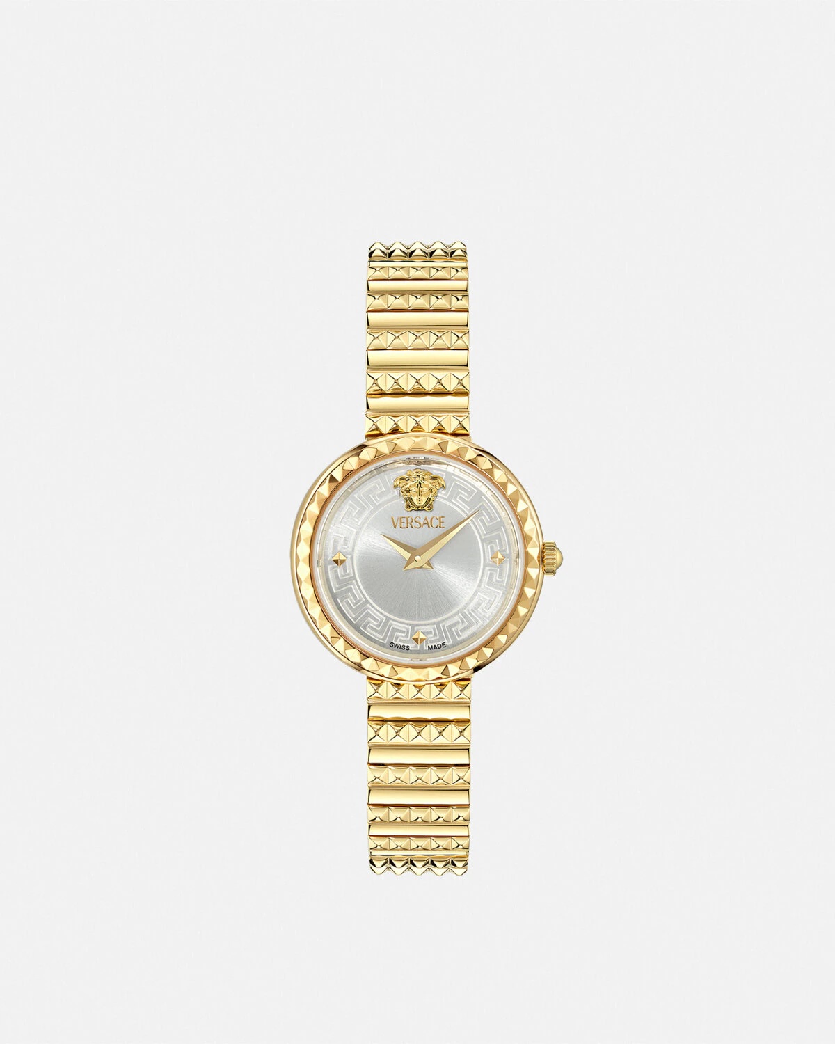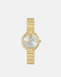 DETAILS Item: - Case: IP2N case - Dial: White silver guilloche dial with 3D Greca on the inner ring / Versace logo and Medusa at 12h - Bracelet: IP2N band bracelet with butterfly buckle - Movement: RONDA 751 Swiss Quartz 2-hands movement - Water Resistant: 3 ATM Item: PVEDFA03-P0024_RTU_TU_PNUL__ SIZE & FIT - Case: 1.1" / 28 mm