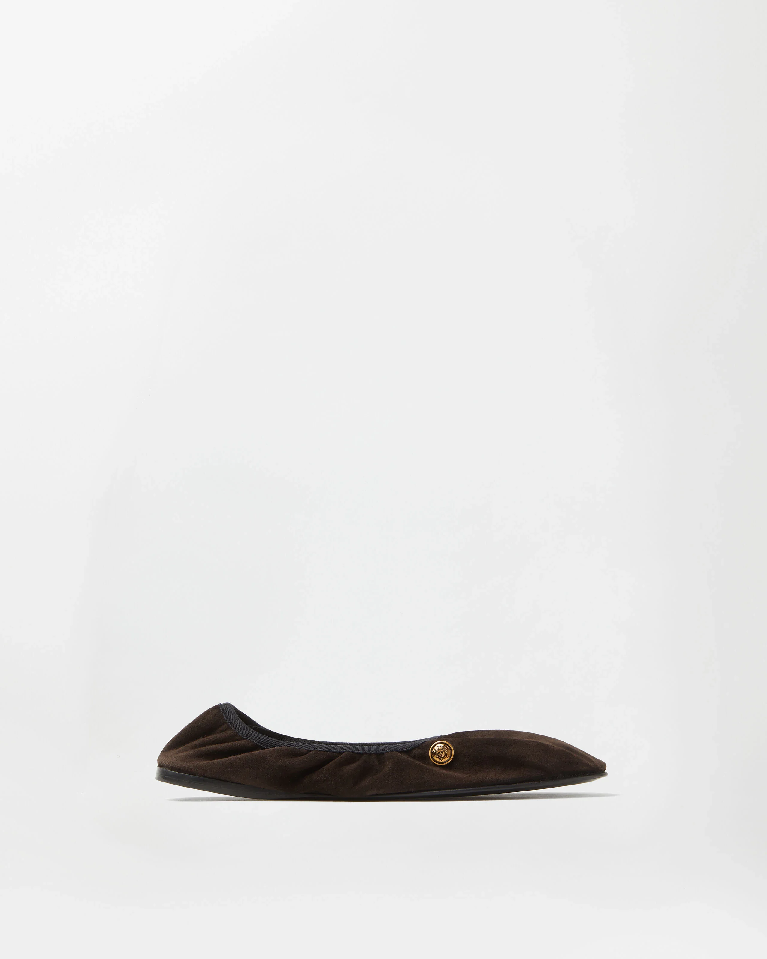 These ultra-light Guanto ballerinas are crafted from suede in an unlined construction, featuring an elastic, and 3D Medusa hardware. - Medusa hardware - Flat - Elastic waistband - Outer composition: 100% Calf leather - Lining: 100% Calf leather - Trim 1: 74% Viscose, 15% Elastane, 11% Polyester - Trim 2: 87% Polyamide, 13% Elastane - Sole: 100% Calf leather Size & Fit - Fit is true to size, we recommend taking your normal size - Footbed: Comfortable Item: 1024165-1A17836_1NM1J