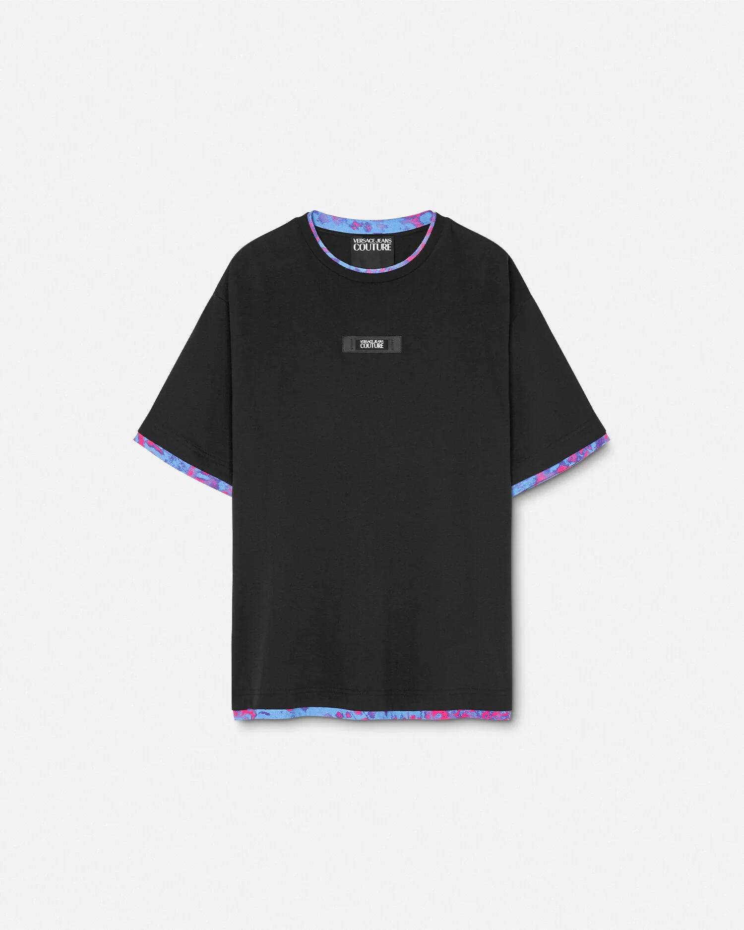 A relaxed-fit mock-layered T-shirt made from cotton, featuring a front Institutional logo patch and contrasting trims in the Animalier print. - Animalier print - Institutional logo patch - Short sleeves - Crewneck - Outer composition: 100% Cotton Size & Fit - The model is 6'3" tall and wears size M - All sizes fit Italian standards Item: E76GAH605-EJ0001_E899