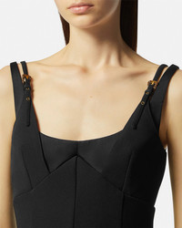 DETAILS A cady stretch midi dress with a scoop neckline and thin double shoulder straps with accent Baroque buckles. - Baroque buckle - Sleeveless - Shoulder straps - Scoop neckline - Concealed back zip closure - Back vent - Outer composition 1: 93% Polyester, 7% Elastane - Outer composition 2: 100% Polyester - Lining: 100% Polyester Item: E76HAO919-EN0103_E899 SIZE & FIT - The model is 5'10" tall and wears size 40 - All sizes fit Italian standards