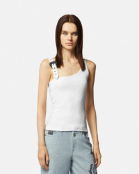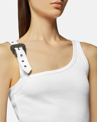 DETAILS This sleeveless ribbed tank top features an adjustable shoulder strap with a Baroque buckle. - Baroque buckle - Sleeveless - Shoulder straps - Ribbed - Outer composition: 95% Cotton, 5% Elastane Item: E76HAM625-EJ0004_E003 SIZE & FIT - The model is 5'10" tall and wears size 40 - All sizes fit Italian standards