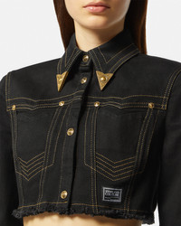 DETAILS This cropped denim jacket is crafted from stretch cotton and features a frayed hem, buttoned closure, and Western-style collar tips. - V-Emblem buttons - Piece Number logo label - Western-style collar tips - Pointed collar - Long sleeves - Front pockets - Snap-button closure - Outer composition: 99% Cotton, 1% Elastane Item: E76HAL253-EDW060L54_E909 SIZE & FIT - The model is 5'10" tall and wears size 40 - All sizes fit Italian standards