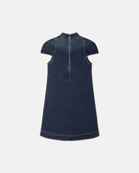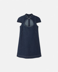A short-sleeved denim mini dress with contrasting top-stitching details featuring an Institutional Logo hardware on the chest cut-out design. - Institutional Logo hardware - Short sleeves - Mandarin collar - Back zip closure - Outer composition: 98% Cotton, 2% Elastane - Lining: 65% Polyester, 35% Cotton Item: E79HAO950-EDW009VF1_E904