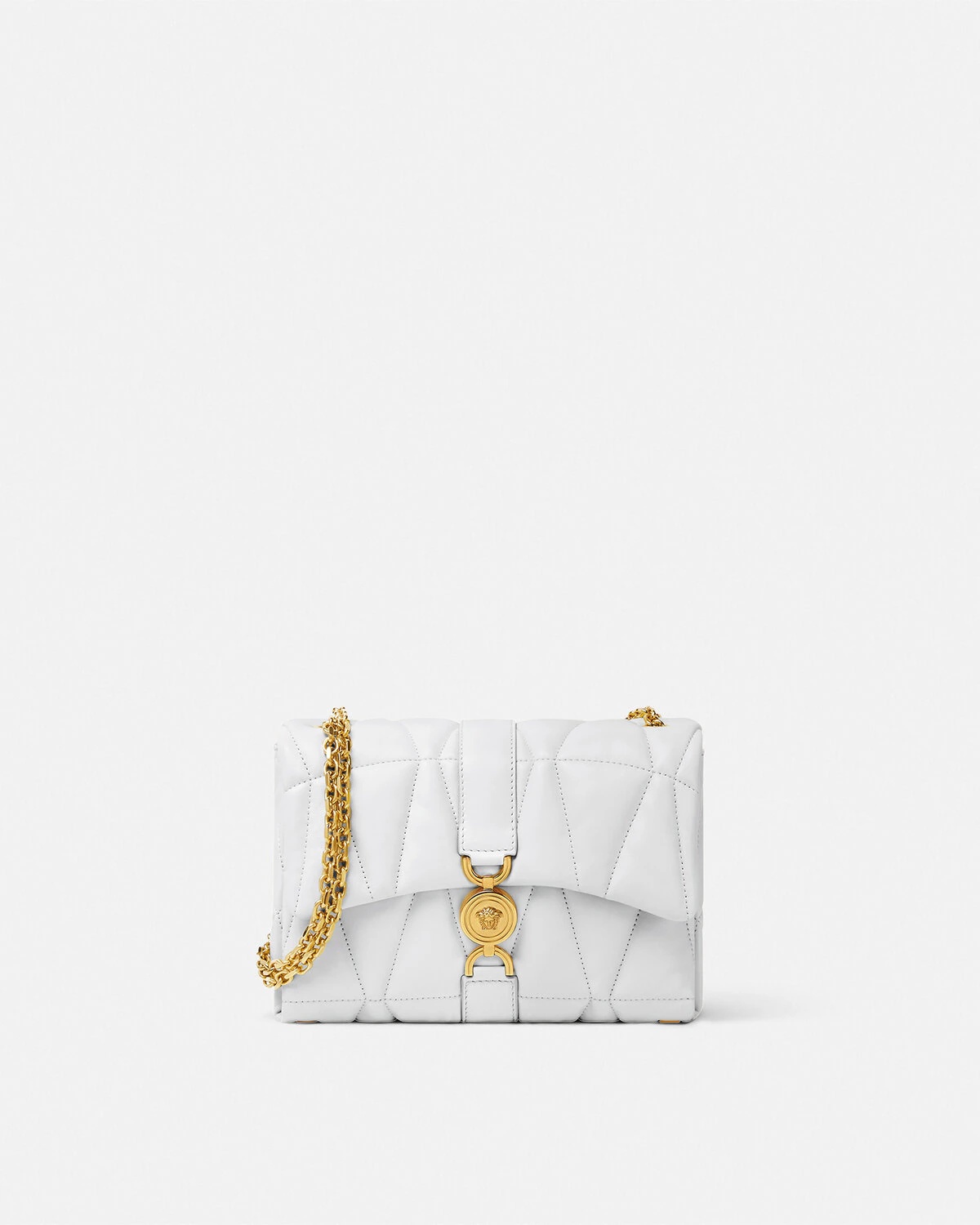 DETAILS Item: - Medusa '95 hardware - Foldover flap - Interior slip compartments - Magnetic interlocking closure - Adjustable chain shoulder straps - Outer composition: 100% Lambskin - Lining: 100% Lambskin Item: 1015964-1A12973_DTU_UNICA_1W56V__ SIZE & FIT - L8.7 x W3.5 x H6.5" / L22 x W9 x H16.5 cm - Shoulder strap: L24.4-39.4" / L62-100 cm - Shoulder drop: L10.8-20.1" / L27.5-51 cm - Approximate weight: 17.6 oz / 0.5 kg