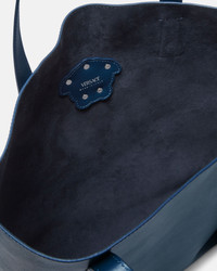 This tote bag is crafted in smooth calf leather featuring a central three-dimensional La Medusa hardware. - La Medusa hardware - Versace Logo embossing - Top handles - Open top - Outer composition: 100% Calf leather - Lining: 100% Calf leather Size & Fit - L14.2 x W2.4 x H13.4" / L36 x W6 x H34 cm - Handle drop: L10.2" / L26 cm Item: 1020004-1A14675_DTU_UNICA_1UO6P__
