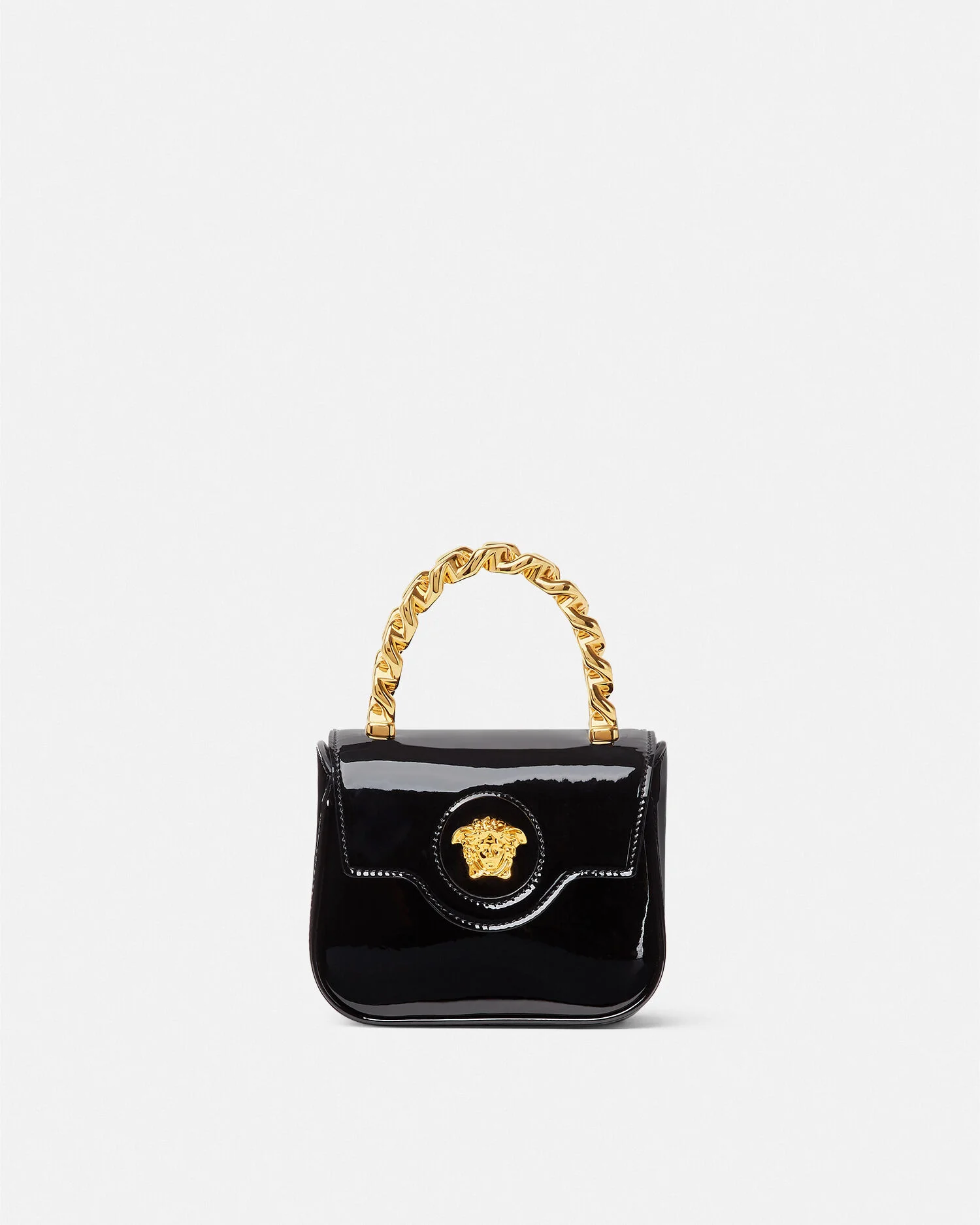 DETAILS Crafted in Italy from glossy leather, this design features a stiff-chain top handle. It's adorned with a central gold-tone Medusa and features an adjustable shoulder strap. - La Medusa hardware - Top handle - Leather shoulder strap - Magnetic button closure - Outer fabric: 100% Calf leather - Lining: 100% Nappa leather Item: 1003016-1A02212_DTU_UNICA_1B00V__ SIZE & FIT - L16 x W6 x H12cm