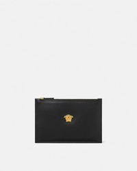 DETAILS A smooth calf leather pouch featuring a threedimensional La Medusa hardware - La Medusa hardware - Versace Logo embossing - Top zip closure - Outer composition: 100% Calf leather - Lining: 100% Calf leather Item: 1020232-1A14675_1B00V SIZE & FIT - L10.2 x W0.2 x H6.7" / L26 x W0.5 x H17 cm - Approximate weight: 7.1 oz / 0.2 kg