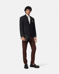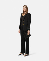 DETAILS A smooth calf leather pouch featuring a threedimensional La Medusa hardware - La Medusa hardware - Versace Logo embossing - Top zip closure - Outer composition: 100% Calf leather - Lining: 100% Calf leather Item: 1020232-1A14675_1B00V SIZE & FIT - L10.2 x W0.2 x H6.7" / L26 x W0.5 x H17 cm - Approximate weight: 7.1 oz / 0.2 kg