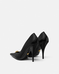 These calf leather pumps are set on a stiletto heel and feature the signature La Medusa hardware on the uppers. The style is detailed by a metal tip with an engraved Versace Logo on the pointed toe. - La Medusa hardware - Versace Logo engraving - Pointed toe - Stiletto heel - Outer Composition: 100% Calf Leather - Lining: 100% Goat Leather - Sole: 100% Calf Leather Size & Fit - The shoe weighs approximately 10.5 oz / 0.3 kg for the model size 40 IT - Footbed: regular - Fits true to size, take your normal size Item: 1020467-1A14835_1B00V