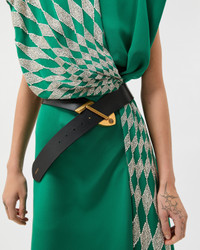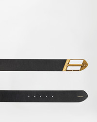 A calf leather belt with a small Versace Logo lettering featuring a diagonal metal buckle with a 3D Medusa hardware. - Medusa hardware - Versace logo lettering - Press closure - Outer composition: 100% Calf leather - Lining: 100% Calf leather Size & Fit - Height: 2" / 5 cm Item: 1023739-DVTP1_1B55J