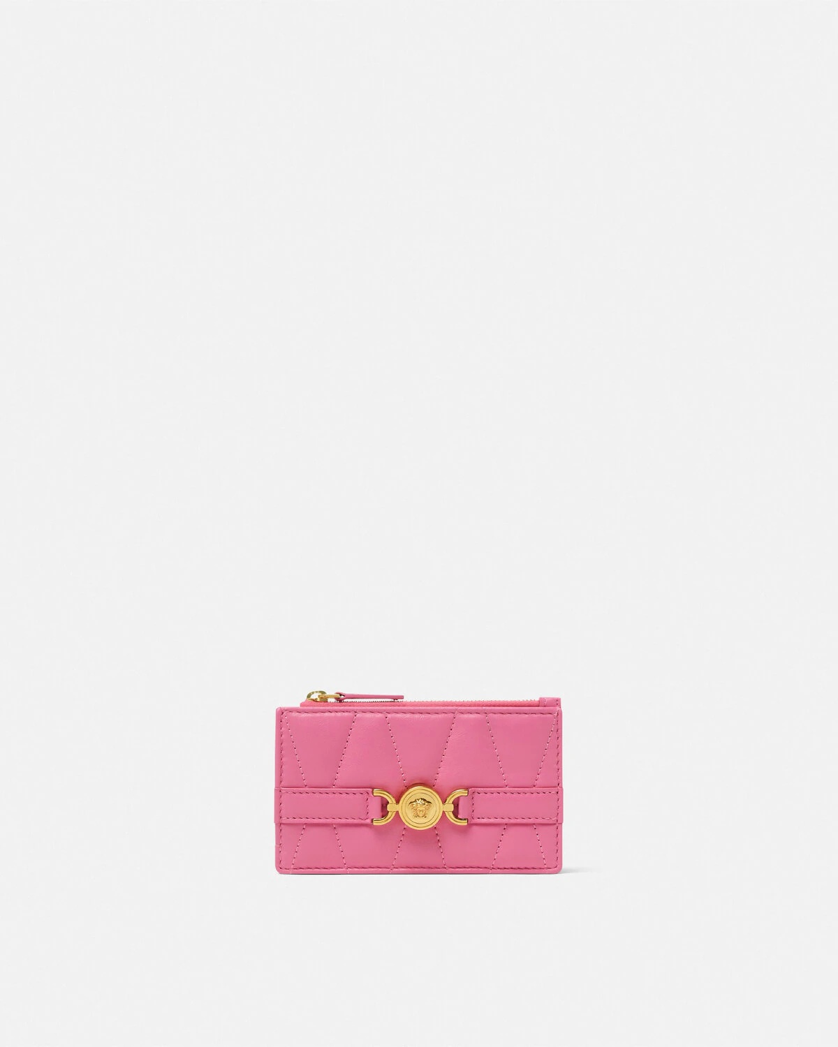 DETAILS This zipped card holder is crafted from soft nappa leather featuring a Vquilting design and is accented by the signature Medusa 95 hardware - Medusa '95 hardware - Top zip closure - Four back card slots - Outer composition: 100% Lambskin - Lining: 100% Lambskin Item: 1016227-1A12975_1PV9V SIZE & FIT - L5.1" x W0.2" x H3.1" / L13 x W0.5 x H8 cm - Approximate weight: 2 oz / 56 g