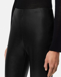 Leggings fully crafted in soft plonge leather featuring a debossed Versace Logo at the waist. - Versace Logo debossing - Concealed side zip closure - Outer Composition: 100% Lambskin - Lining: 98% Cotton, 2% Elastane Size & Fit - The model is 5'10" / 1.78 m tall and wears size 38 IT Item: 1021690-1A16045_1B000