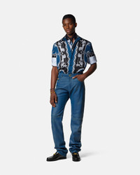 This slim-fit short-sleeved shirt is made from silk twill and features an all-over Hall of Heroes print, a reinterpretation of an archival Versace Home print featuring classical statues, deities and Barocco motifs. - Hall of Heroes print - Short sleeves - Notched collar - Front button closure - Outer composition: 100% Silk Size & Fit - The model is 6'1" / 1.86 m tall and wears size 48 IT Item: 1022740-1A16096_5BE50