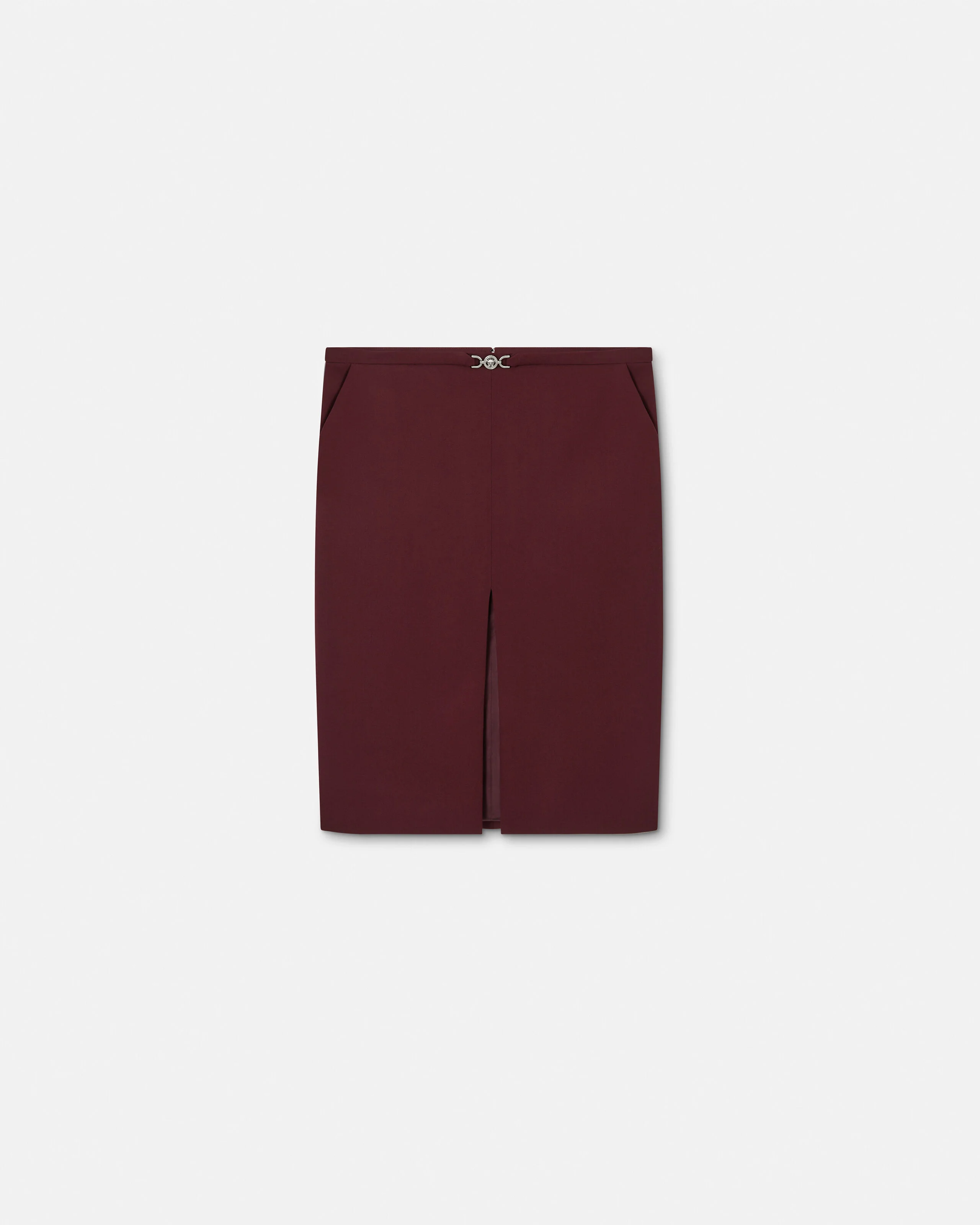 A fitted pencil midi skirt in stretch gabardine featuring a Medusa '95 hardware at the waistband and a front split. - Medusa '95 hardware - Concealed back zip closure - Side pockets - Front split - Outer composition: 98% Pure virgin wool, 2% Elastane - Lining: 100% Cupro Size & Fit - The model is 5'10" / 1.79 m tall and wears size 38 IT Item: 1022398-1A12595_1RD90