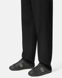 These low-top sneakers are characterized by an engraved Greca pattern on the soles featuring Medusa and round metal studs. A foil Versace logo details the heel counter. - Greca motif - Medusa hardware - Stud embellishments - Low-top - Lace-up - Round toe - Logo patch at the tongue - Logo on heel counter - Outer composition: 100% Nylon - Lining: 100% Polyester - Trim: 100% Nylon - Sole: 100% Thermoplastic polyurethane Size & Fit - The shoe weighs approximately 21.2 oz / 0.6 kg for the model size 42 IT - Footbed: regular - Fits true to size, take your normal size Item: 1014460-1A13065_1B00V