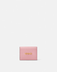 DETAILS A compact bifold wallet in a smooth calf leather featuring a metal Versace Logo lettering multiple interior card slots a zipped coin pouch and a note compartment - Versace Logo lettering - Bifold design - Snap-button closure - 5 card slots - Zipped coin compartment - Note compartment - Slip pocket - Back slip pocket - Outer composition: 100% Calf leather - Lining: 60% Cotton, 40% Viscose - Trim: 100% Lambskin Item: 1020080-1A13677_1PG4V SIZE & FIT - L4.3 x W1.2 x H3.1" / L11 x W3 x H8 cm - Approximate weight: 3.5 oz / 0.1 kg