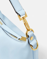 The Versace Tag hobo bag is crafted from ultra-soft nappa leather. The versatile accessory is accented by metal Versace lettering and can easily be carried in-hand by the top handle or crossbody by the detachable and adjustable leather strap. A removable leather tag keychain with Medusa hardware completes the design. - Medusa hardware - Versace Logo lettering - Top zip closure - Top handle - Adjustable and detachable shoulder strap - Removable keychain tag - Outer composition: 100% Lambskin - Lining: 100% Polyester Size & Fit - L9" x W6.3" x H4.3" / L23 x W16 x H11 cm - Handle drop:L4.7" / L12 cm - Shoulder strap: L49.2" / L125 cm - Shoulder strap drop: L17.3"-19.7"-22" / L44-50-56 cm - Approximate weight: 10.5 oz / 0.3 kg Item: 1018302-1A13171_DTU_UNICA_1VD6V__